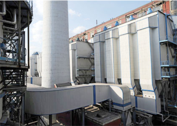 • 大型袋式反吹除塵器在山東博興的安裝現場